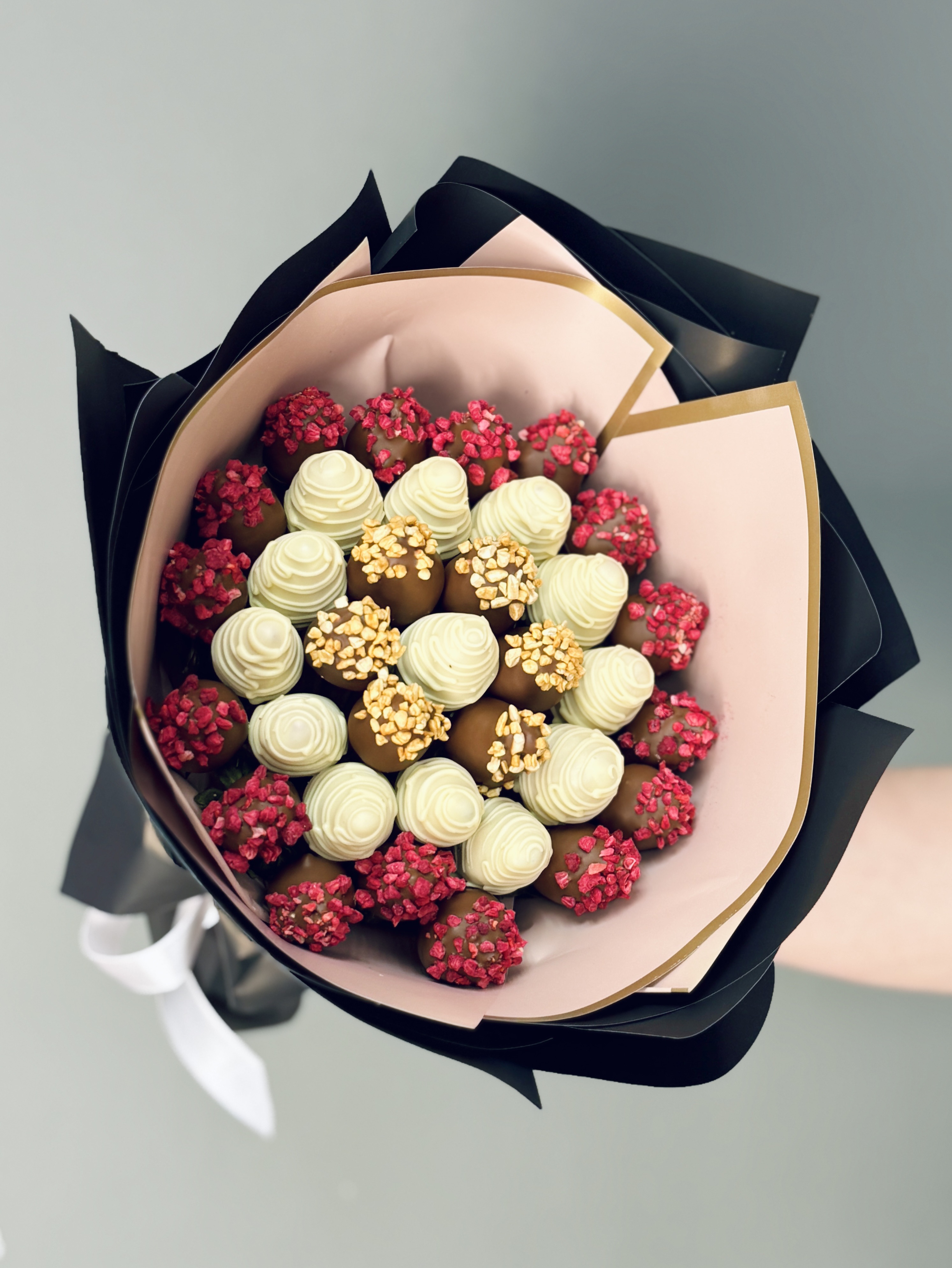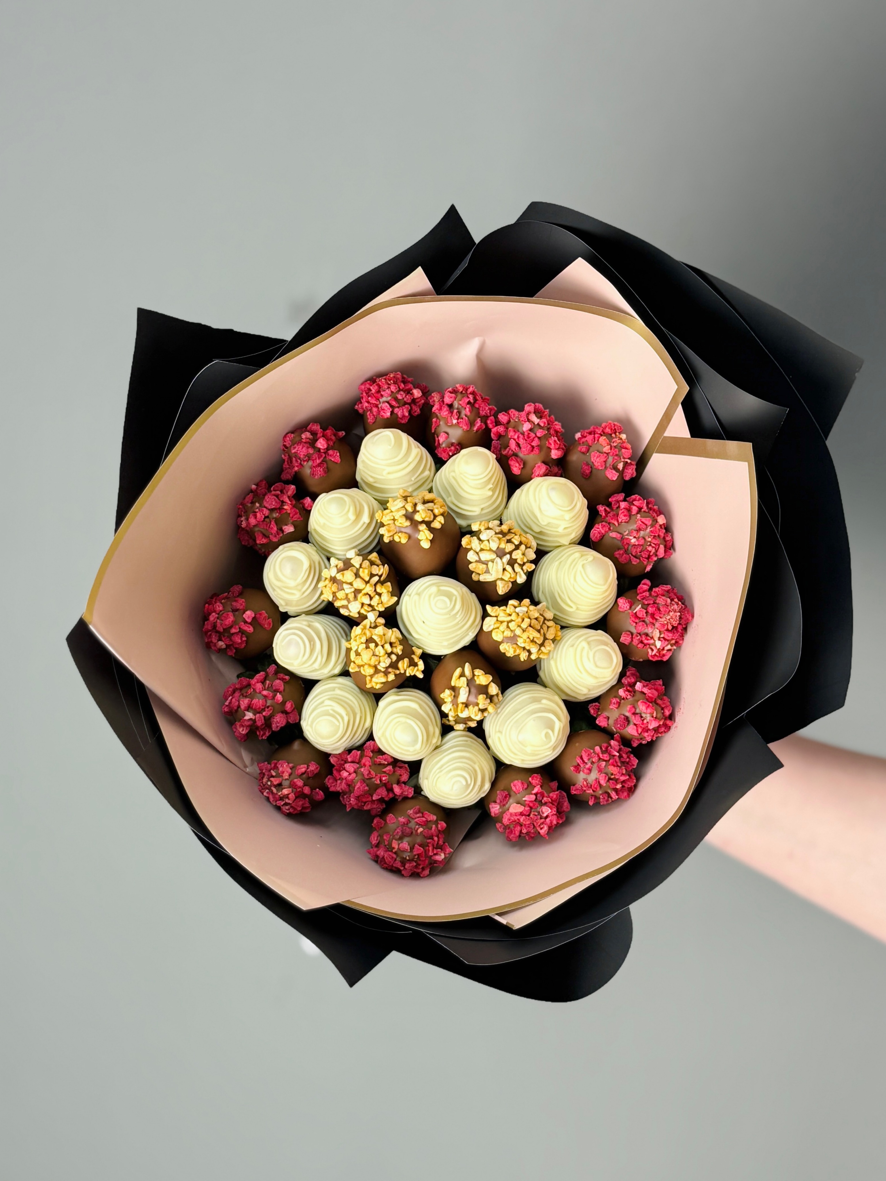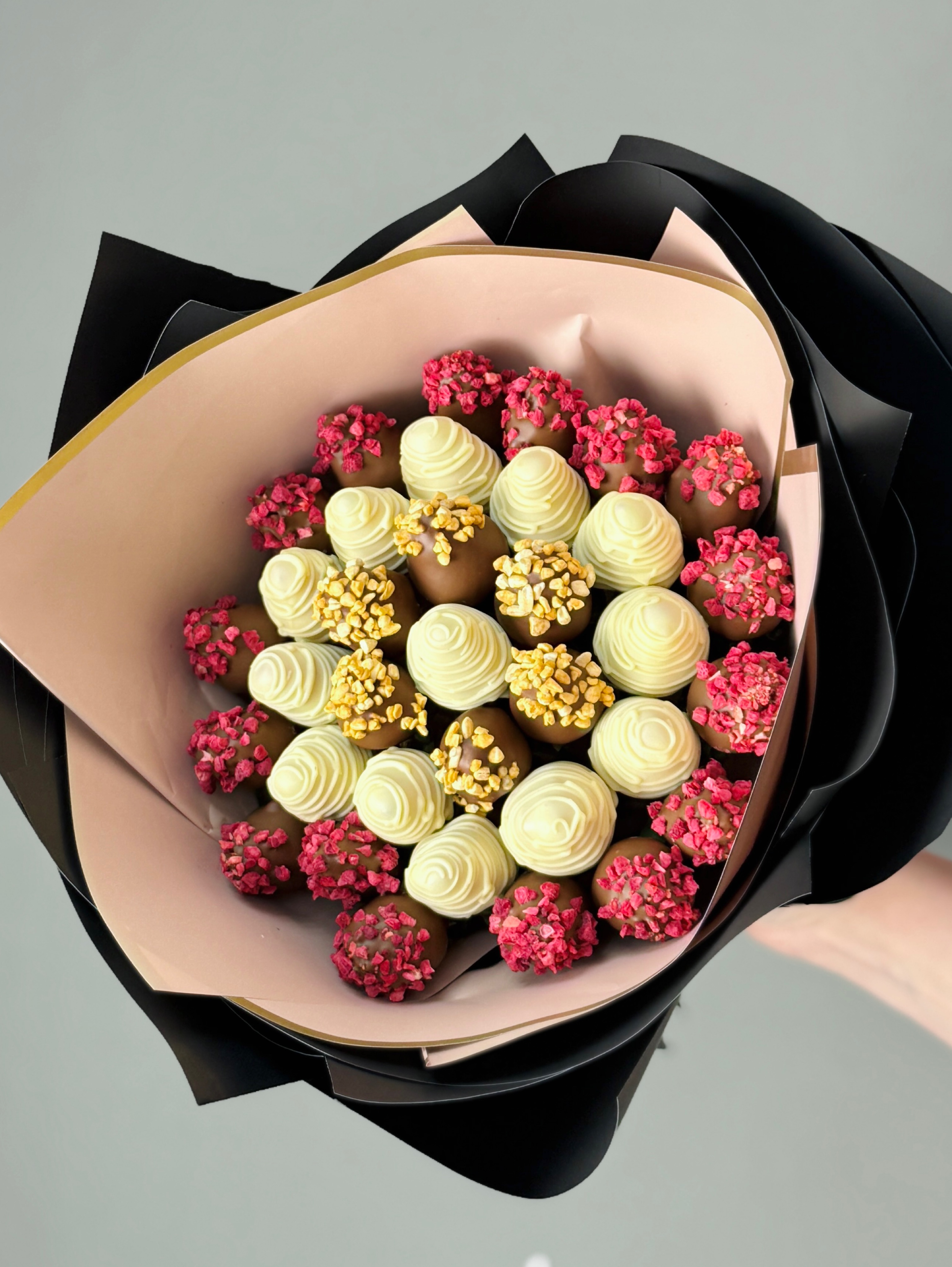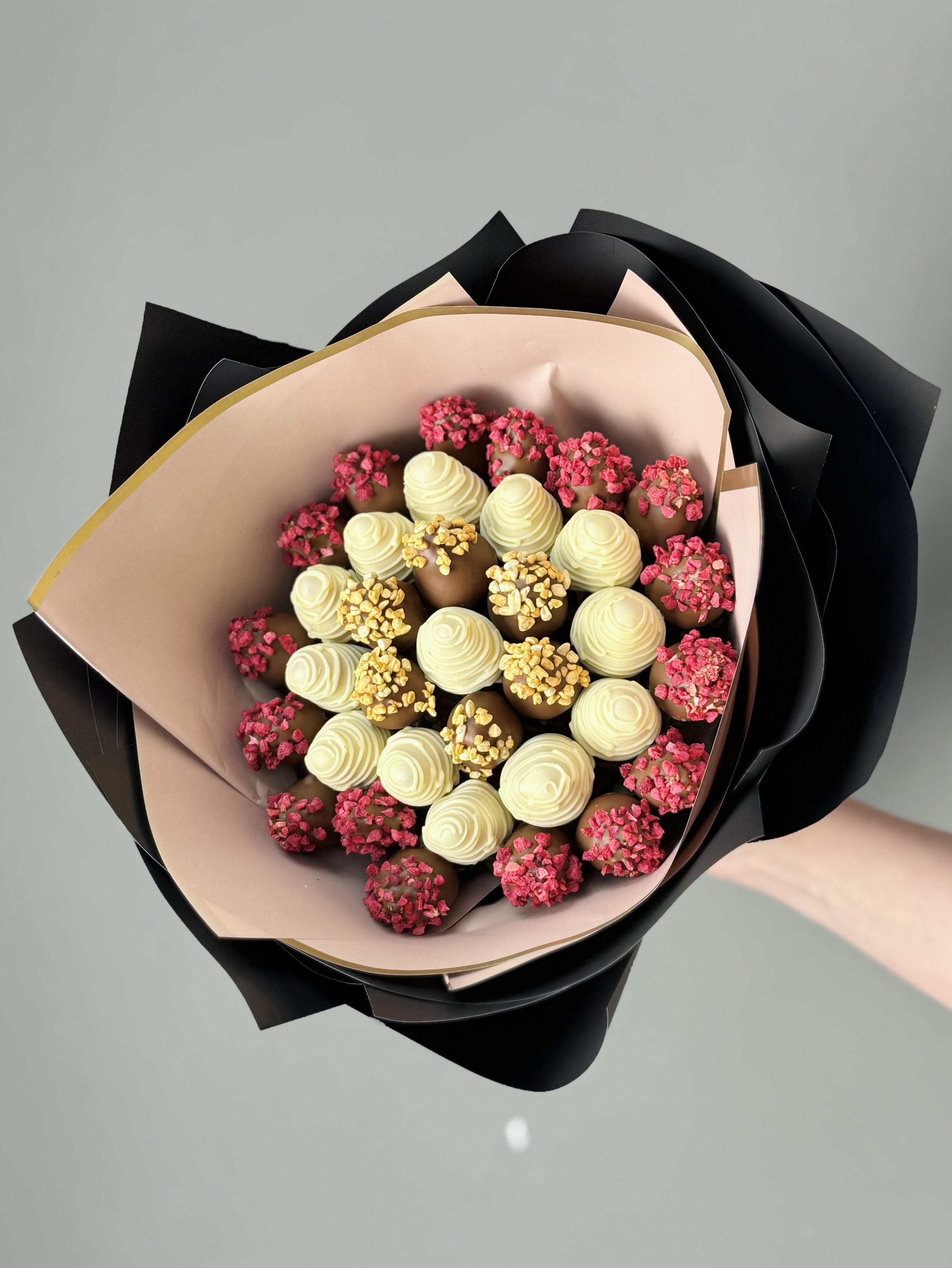 Потрясающий стильный букет из клубники в шоколаде для любимых