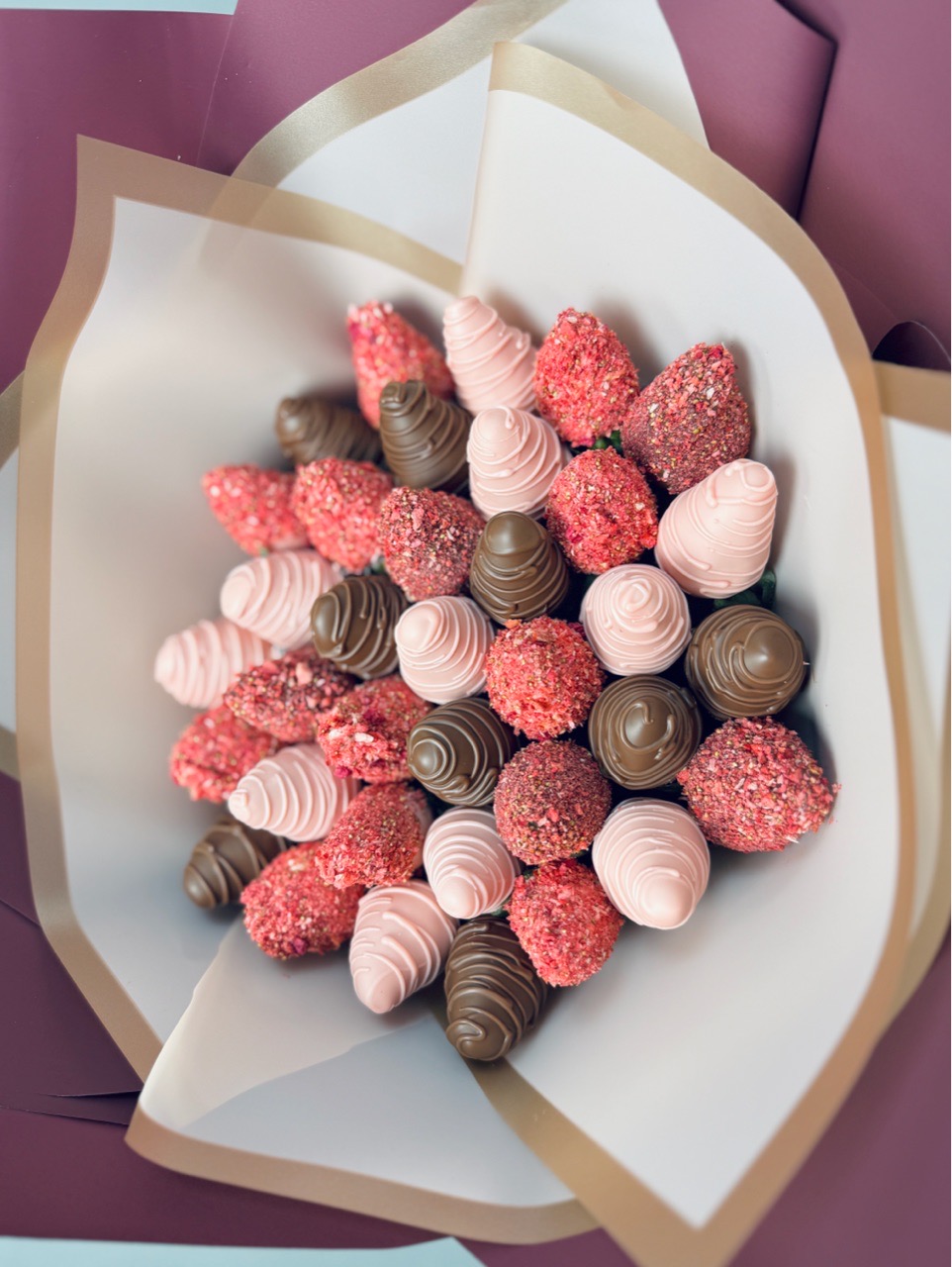 Набор из клубники в бельгийском молочном шоколаде , шоколадными завитками с добавлением золота 😍