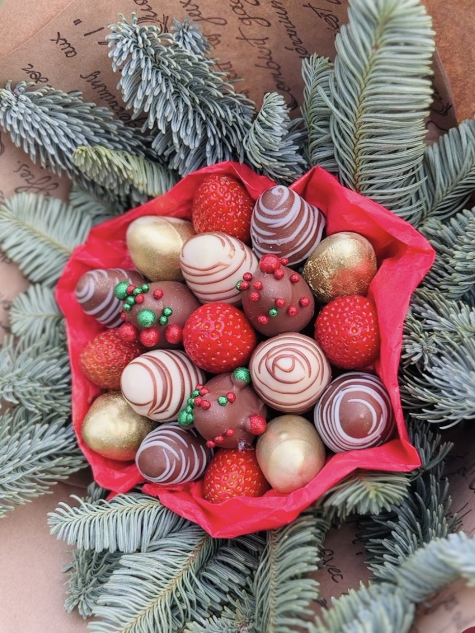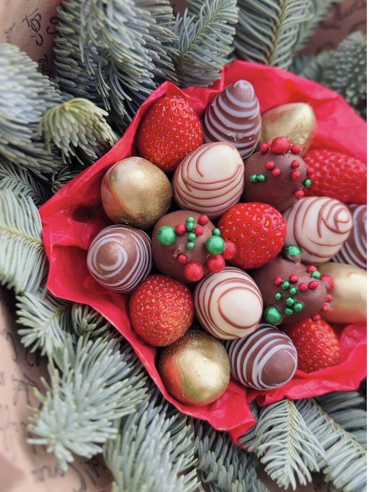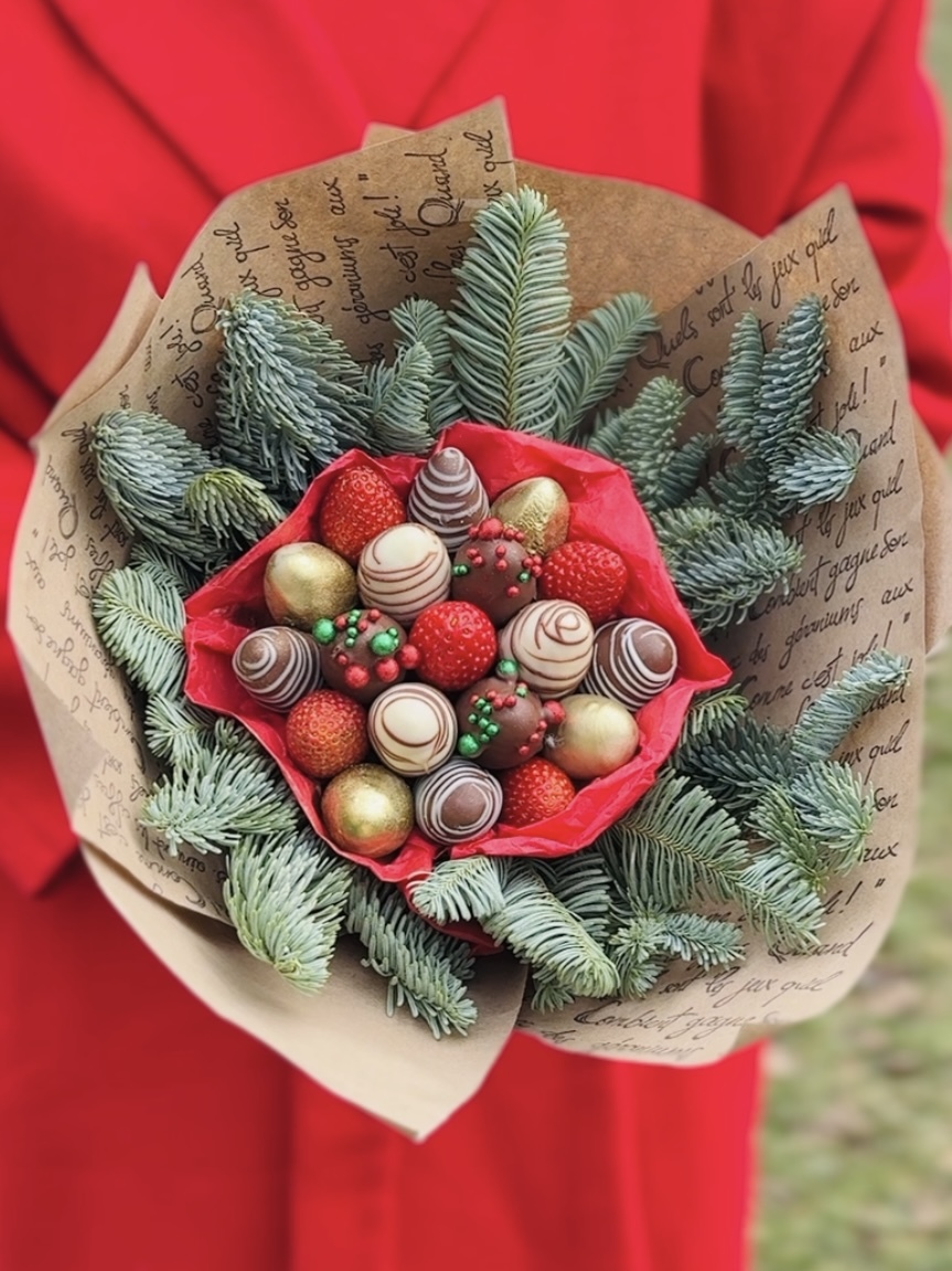 Новогодний букет сочетает в себе свежую клубнику покрытую бельгийским шоколадом и нобилис!